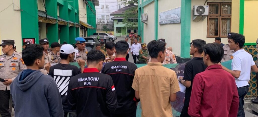 PEKANBARU, Tepakonline.com- Himarohu-Riau turun aksi di depan kantor DLHK Provinsi Riau, masa yang tergabung dalam Himpunan mahasiswa Rokan Hulu-Riau menggelar aksi di depan Kantor DLHK Provinsi Riau. Senin 25/03/2024.
