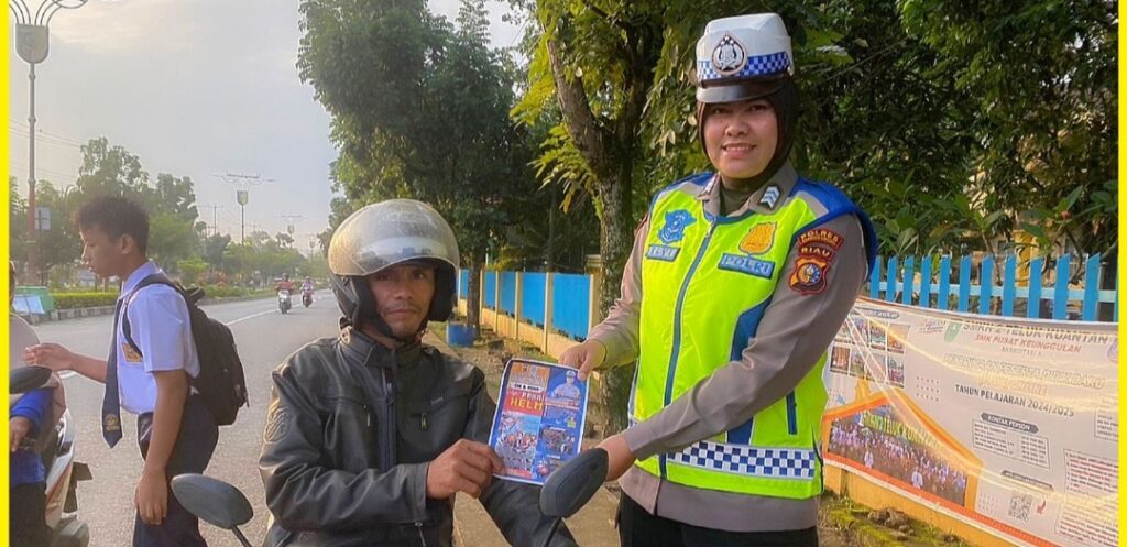KUANSING, Tepakonline.com– Satuan Lalu Lintas (Sat Lantas) Polres Kuansing telah melaksanakan kegiatan pemasangan stiker dan brosur himbauan untuk menggunakan helm SNI pada kendaraan bermotor di wilayah hukum Polres Kuansing, Selasa (20/2/2024) Pukul 07.00 WIB.