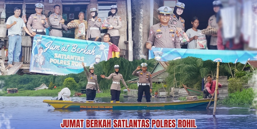 ROHIL- Peduli dan berbagi sesama, kembali Satlantas Polres Rohil laksanakan kegiatan pemberian bantuan sosial sembako sedekah jum’at berkah ke 5 masyarakat kurang mampu di RT 004 RW 002 Dusun Terminal Desa Kepenghuluan Ujungtanjung Kecamatan Tanah Putih Kabupaten Rohil, Jum’at 17/11/2023. Pukul 09.00 Wib.
