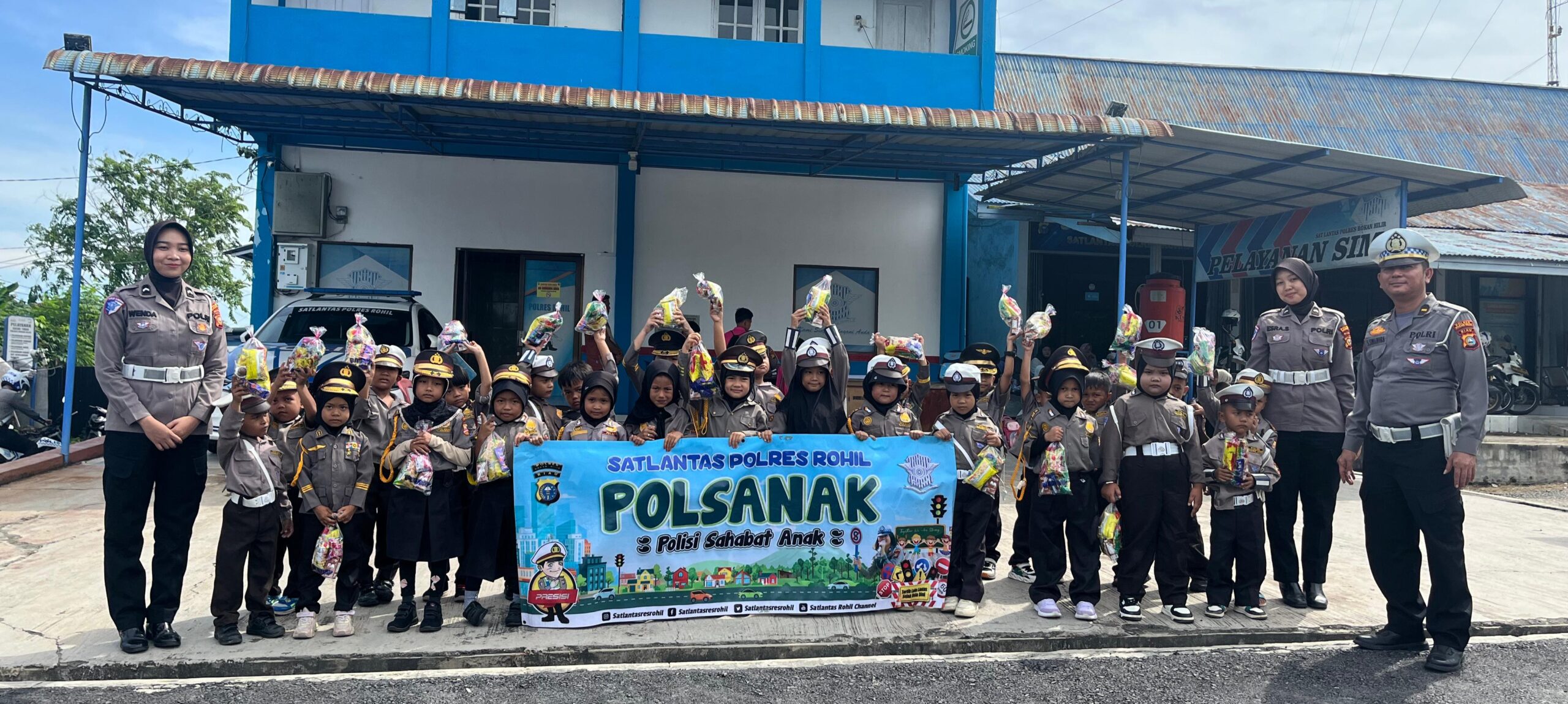ROHIL- Berikan edukasi sejak usia dini, kembali Satlantas Polres Rohil Sosialisasi Polsanak pengenalan rambu-rambu lalu lintas bersama anak-anak TK Nurul Islam Kecamatan Balai Jaya Kabupaten Rokan Hilir, Jum’at 23/05/2025, Pukul 09.30 Wib.