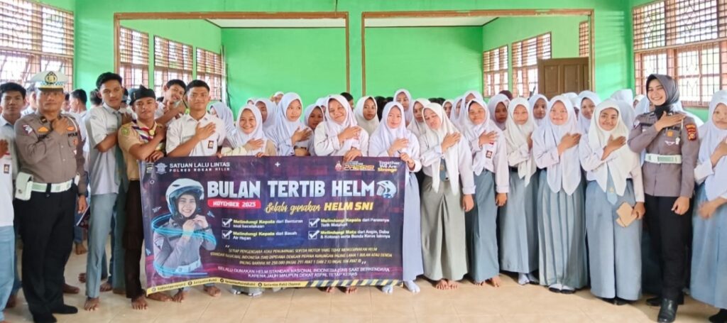 ROHIL- Kembali Satlantas Polres Rohil kembali laksanakan kegiatan Sosialisasi Tertib Berlalu Lintas dan tertib Bulan November Tertib Helm di Sekolah, di Media Sosial, Pawai Helm, dan Ditengah masyarakat, Kabupaten Rokan Hilir, Rabu 29/11/2023, Pukul 09.00 Wib.