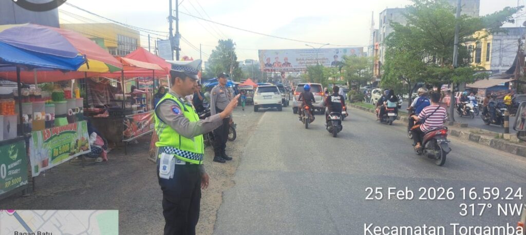 Tepakonline.com, BAGAN SINEMBAH- Dalam rangka memberikan rasa aman dan nyaman kepada masyarakat pada bulan Ramadhan, Polsek Bagan Sinembah melaksanakan kegiatan pengamanan dan pengaturan arus lalu lintas di kawasan Pasar Tumpah Ramadhan, Bagan Batu, Rabu (25/02/2026) sekira pukul 17.00 WIB hingga selesai.