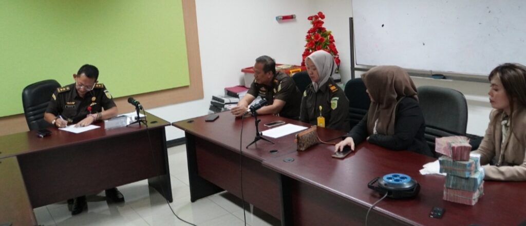 Tim Penyidik Bidang Tindak Pidana Khusus Kejaksaan Tinggi Sumatera Selatan menerima Penitipan Pengembalian Kerugian Keuangan Negara dalam Perkara Dugaan Tindak Pidana Korupsi, Kolusi dan Nepotisme di Komite Olahraga Nasional Indonesia (KONI) Provinsi Sumatera Selatan.