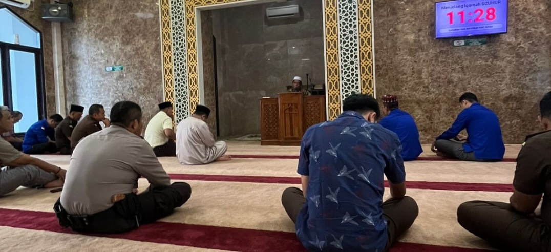 Kegiatan Tausiyah Qobla Dzuhur di Masjid Al-Mizan Kejaksaan Tinggi Riau berjalan aman, tertib, dan lancar. (Red).