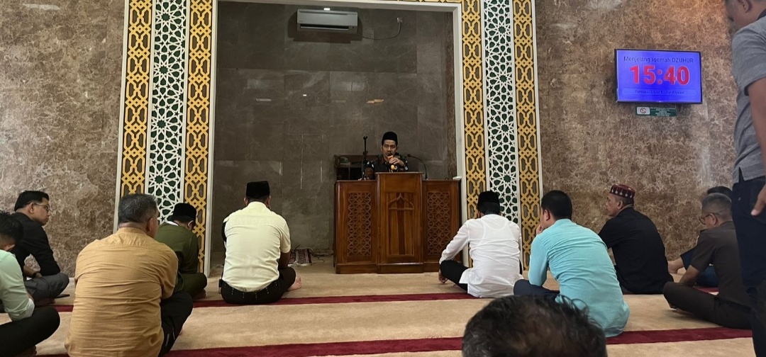 Kegiatan Tausiyah Qobla Dzuhur di Masjid Al-Mizan Kejaksaan Tinggi Riau berjalan aman, tertib, dan lancar. (Red).