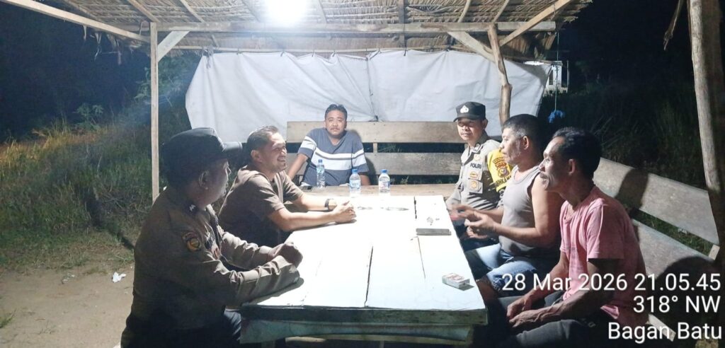 Tepakonline.com, BAGAN SINEMBAH- alam upaya menjaga situasi kamtibmas tetap kondusif, jajaran Polsek Bagan Sinembah melaksanakan kegiatan patroli malam sekaligus sosialisasi untuk mengaktifkan kembali Pos Siskamling di wilayah hukumnya, Sabtu (28/3/2026) malam.