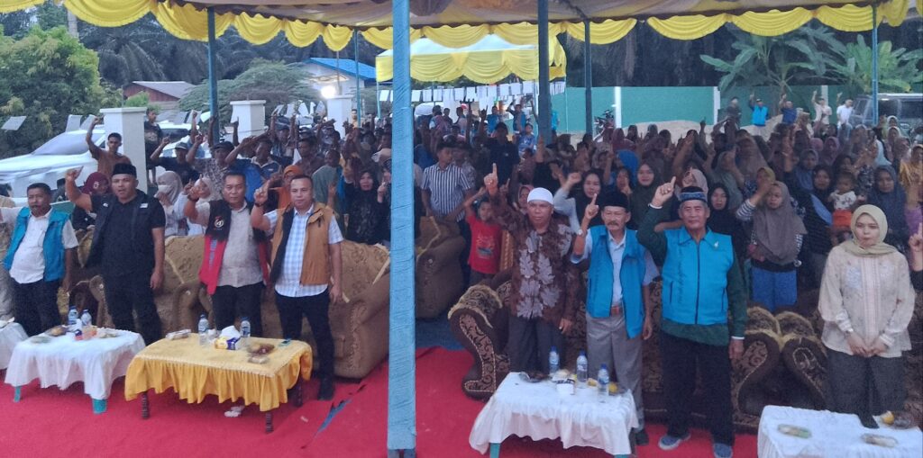 Tepakonline.com, ROHIL- Walaupun cuaca gerimis, paslon Asset Afrizal Sintong-Setiawan dan tim pemenangan serta beberapa ketua partai koalisi laksanakan kampanye dialogis di Dusun Bakti Pasar 1, Kepenghuluan Bakti Makmur, Kecamatan Bagan Sinembah, Kabupaten Rohil, Senin 11/11/2024, Pukul 16.00 Wib.